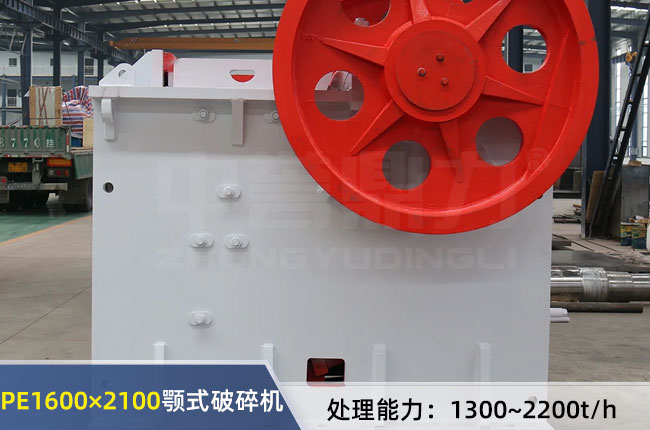 PE1600×2100顎式破碎機較大的進料粒度1500mm,排料口調(diào)整范圍300-400mm,每小時處理產(chǎn)能1300-2200噸,配備的電機功率8P 350-380kw。