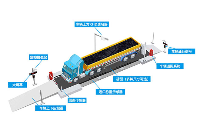 自動(dòng)過(guò)磅稱(chēng)重系統(tǒng)地磅過(guò)磅流程為:車(chē)輛進(jìn)廠通過(guò)車(chē)牌識(shí)別系統(tǒng)自動(dòng)采集車(chē)輛信息,綠燈亮起,道閘桿打開(kāi),車(chē)輛過(guò)磅,LED屏顯示車(chē)輛相關(guān)信息。