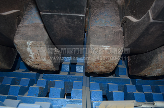 2、調(diào)節(jié)襯板上的彈簧裝置可以自動(dòng)規(guī)避大塊物料,當(dāng)大塊物料撞擊調(diào)節(jié)襯板的時(shí)候,彈簧裝置會(huì)自動(dòng)收縮,將其排除機(jī)體,了損壞機(jī)體部件的隱患。