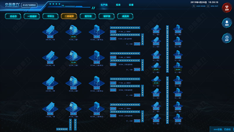 中譽(yù)鼎力礦山生產(chǎn)管理系統(tǒng)(又叫DCS超級中控系統(tǒng)),是為實現(xiàn)礦山智能化、自動化生產(chǎn)而開發(fā)的可視化生產(chǎn)管理系統(tǒng)。