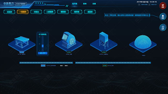 對生產線生產數據保存,提供對礦山設備和生產線歷史數據追溯,配合多種形式的數據圖表,直觀生產線各個設備的運行狀態(tài)及生產線生產狀況,支持按天和時間段做出解析評估。提供礦石設備智能化、信息化服務。