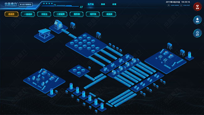3、砂石骨料生產(chǎn)設(shè)備自動化控制系統(tǒng)即礦山生產(chǎn)管理系統(tǒng),提供人機(jī)交互界面,可對粉碎設(shè)備各組合體系做出啟停、聯(lián)動參數(shù)以及守護(hù)、報(bào)警參數(shù)的設(shè)置,提供設(shè)備故障報(bào)警實(shí)時查詢。