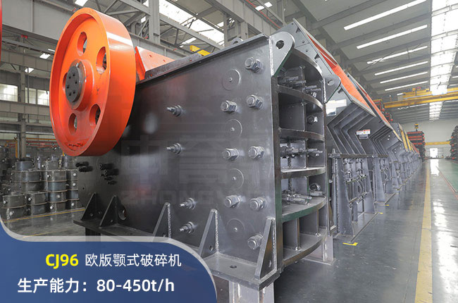 CJ96顎式破碎機(jī),俗稱96鄂破,進(jìn)料口尺寸930×580mm,進(jìn)料粒度在480mm,出料60-175mm,電機(jī)90kw,時(shí)產(chǎn)量80-450t/h。