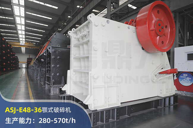 ASJ-E48-36顎式破碎機(jī)進(jìn)料口尺寸1220×910mm,進(jìn)料粒度≤850mm,出料大小≤100mm,電機(jī)功率160kw,時(shí)產(chǎn)在570噸左右。