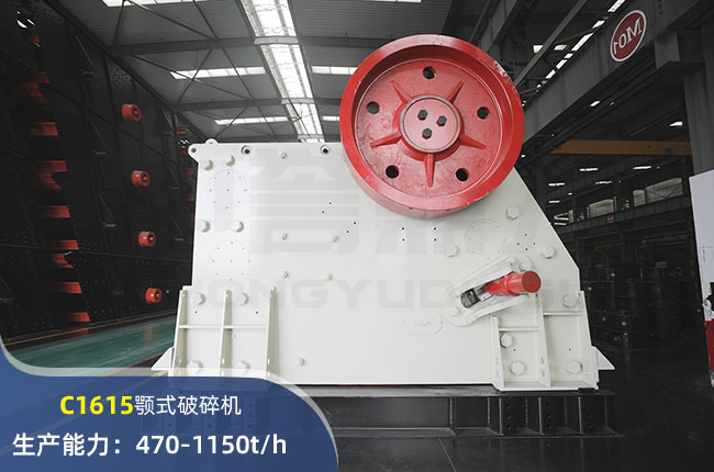 C1615顎式破碎機(jī)進(jìn)料口尺寸1610×1400mm,進(jìn)料粒度≤1400mm,出料大小≤120mm,電機(jī)功率250kw,時(shí)產(chǎn)量在1150噸左右。