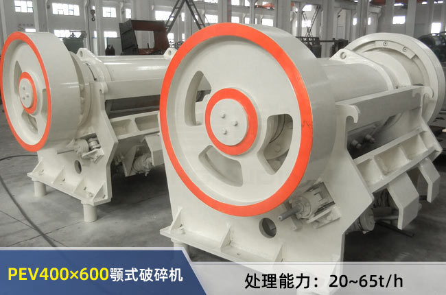 PEV400×600顎式破碎機(jī)時(shí)產(chǎn)20-95噸,電機(jī)功率為30或37千瓦,進(jìn)料粒度要求<340mm,出料范圍40-80mm,重量是7噸,外形長2500mm,寬1750mm,高1950mm。