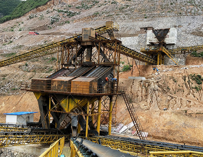 設(shè)備配置:ZG0938振動(dòng)給料機(jī)+69顎式破碎機(jī)+1210雙腔硬巖破(1315反擊式破碎機(jī))+圓振動(dòng)篩+皮帶輸送機(jī)