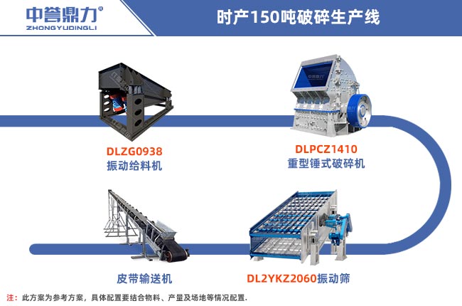配置150噸石料生產(chǎn)線需要用到給料設(shè)備、破碎設(shè)備、篩分設(shè)備、制砂設(shè)備、輸送設(shè)備等,針對(duì)不同硬度的巖石物料及用戶生產(chǎn)需求,時(shí)產(chǎn)150噸石料廠機(jī)器配置大致分為以下幾種:
