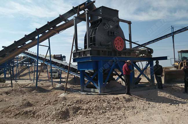 設(shè)備配置:ZG0930振動(dòng)給料機(jī)+PCZ1410重錘式破碎機(jī)+2YKZ2060圓振動(dòng)篩+皮帶輸送機(jī)