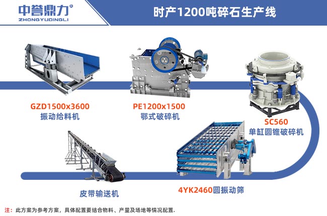 時產(chǎn)1200噸中等硬度物料破碎方案