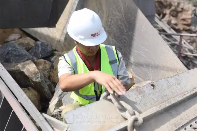 在生產(chǎn)線現(xiàn)場(chǎng),中譽(yù)鼎力安裝工程師針對(duì)唐總反映的近幾天進(jìn)料時(shí)有點(diǎn)卡料的情況,及時(shí)檢查破碎機(jī)和皮帶機(jī)運(yùn)行狀態(tài),查看原材料,現(xiàn)場(chǎng)為客戶解決問(wèn)題。