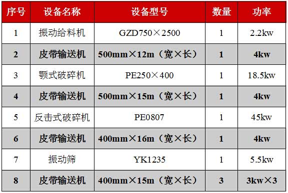 由震動喂料(GZD750×2500)、鄂破機(PE250×400)、pf反擊破(PF0807)、篩石子機(YK1235)、傳送設(shè)備(400毫米寬X16m長)等機械組成;布置處理量通常為20-30噸/小時。