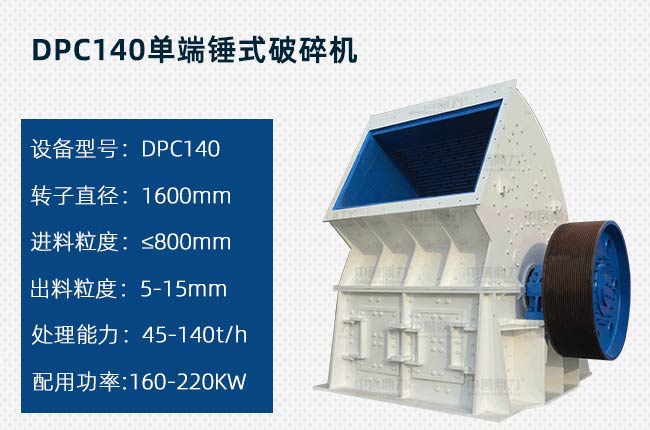 140錘破碎機(jī)是一款單端錘式破碎機(jī),型號(hào)為DPC140,該設(shè)備可以破碎80公分以下的物料,出料在5-15mm,一小時(shí)可以產(chǎn)45-140噸,用的是160-220千瓦的電機(jī)。
