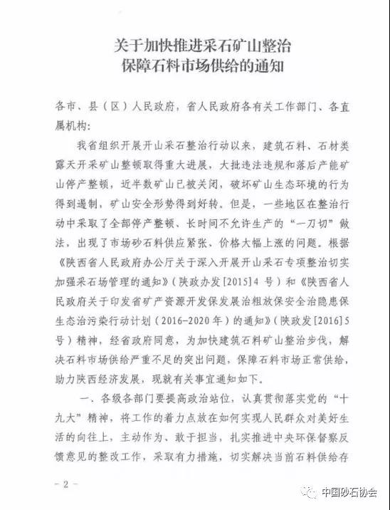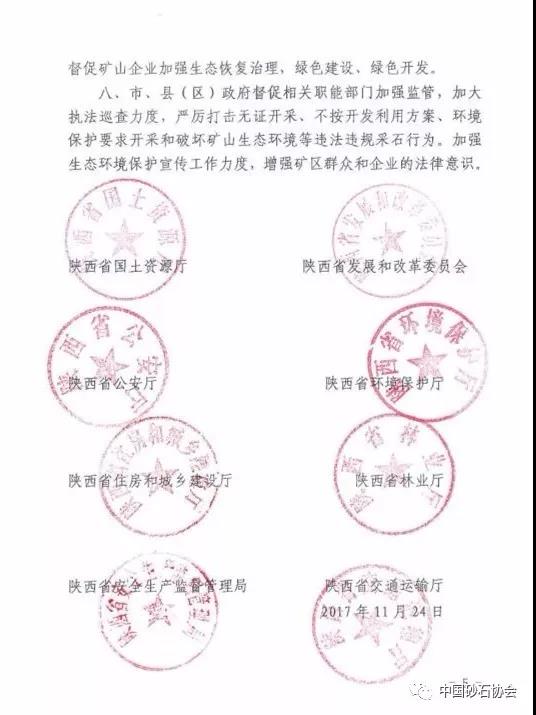 此前,即2017年11月24日,陜西省土資源廳、陜西省發(fā)展和改革委員會(huì)、陜西省公安廳、陜西省公安廳、陜西省環(huán)境保護(hù)廳、陜西省住房與城鄉(xiāng)建設(shè)廳、陜西省林業(yè)廳、陜西省安生產(chǎn)監(jiān)督管理局和陜西省交通運(yùn)輸廳八部門聯(lián)和發(fā)布《關(guān)于加快推進(jìn)采石礦山整治 保障石料市場供給的通知》。為加快建筑石料礦山整治步伐,解決石料市場供應(yīng)嚴(yán)重不足的突出問題,保障石料市場正常供給,助力陜西經(jīng)濟(jì)發(fā)展。要求: