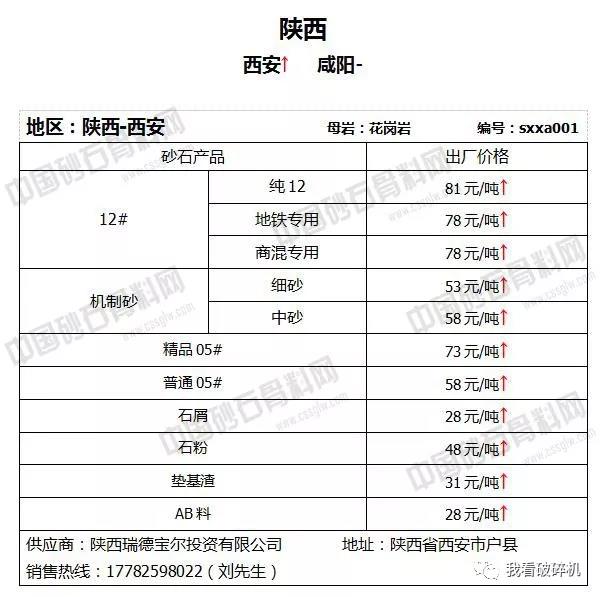 陜西地區(qū):西安砂石價格普遍上調3元/噸。