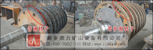 錘破是破碎機(jī)設(shè)備中 為常用的一種。部件為轉(zhuǎn)子,每個(gè)廠家針對(duì)轉(zhuǎn)子都有不同的保護(hù)方法,而護(hù)圈的設(shè)備結(jié)構(gòu)相比其它有什么優(yōu)勢(shì)呢?