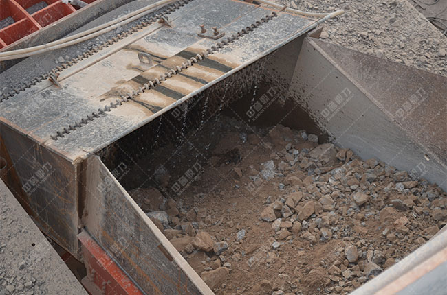 破碎機(jī)的工作過程:混合均勻的細(xì)碎物料連續(xù)不斷地溜礦槽、料箱,再通過電動(dòng)機(jī)、減速器、皮帶驅(qū)動(dòng)的旋轉(zhuǎn)布料器,沿圓周方向均勻分布在破碎機(jī)受料區(qū)再進(jìn)入緩沖腔。布料器能實(shí)現(xiàn)給料速度的控制,破碎腔中料層高度的穩(wěn)定。物料隨動(dòng)錐擺動(dòng)以及破碎腔中物料高度的壓力,經(jīng)緩沖腔一部分物料隨動(dòng)著動(dòng)椎的擺動(dòng)并由平行區(qū)“喉口”處動(dòng)椎上的凸臺控制物料,使它自由地進(jìn)入研磨腔。破碎開始時(shí),物料被下部動(dòng)椎襯板帶起來,同時(shí)又排出運(yùn)動(dòng)和被阻隔在破碎襯板間的情況。動(dòng)椎于定錐靠的近時(shí),襯板間仍有一層相當(dāng)厚的小顆粒將其隔開。在大多數(shù)情況下,為了得到較好的產(chǎn)品粒度并使?jié)M足要求的物料含量更高,應(yīng)增大而不是減小排料間隙。