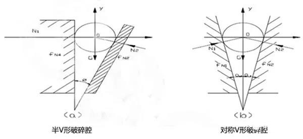 V形腔結(jié)構(gòu)使實(shí)際進(jìn)料口寬度與名義進(jìn)料口寬度相一致,并且更容易排料,相對(duì)來(lái)說(shuō)不易發(fā)生堵料現(xiàn)象,不易蹦料,更深的破碎腔,無(wú)死區(qū),破碎效率更高。