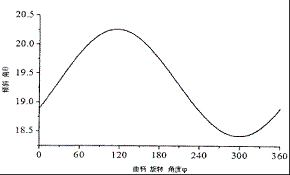 鄂破連桿傾角θ是指連桿軸線與定顎板面之間的夾角,我們根據(jù)上公式和已知條件可以可繪出隨曲柄運(yùn)行角度θ變化的曲線如圖1所示。