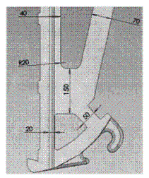 原始的機(jī)構(gòu)尺寸如下圖1,分別對額板處、額板背面,肘板銜接處、出料口出的尺寸進(jìn)行優(yōu)化,為肘板的安系數(shù),肘板銜接處的尺寸限尺寸定為:Xmin=50毫米,其它幾個尺寸分別根據(jù)邊界條件進(jìn)行優(yōu)化,通過6次迭代,取得優(yōu)化后的結(jié)構(gòu)尺寸如下圖2。