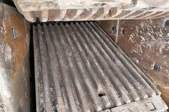三、物料重復(fù)擠壓,導(dǎo)致顎板表觀材料被局部壓裂或翻起,其碎裂或翻起部分又因為擠壓打擊的物料一起掉落形成碎屑。