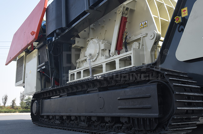 履帶式移動破石機:履帶底盤機架,會對路面造成損壞,不適合長距離運輸,但履帶抓地力強,可以爬坡,能適應(yīng)各種復(fù)雜、惡劣的環(huán)境?捎糜诘V石、尾礦的破碎。