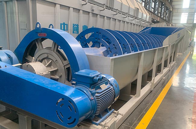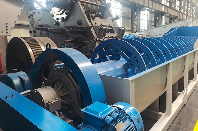 螺旋洗砂機(jī)洗砂效能高,清洗能力強(qiáng),可清洗石頭石子,具有洗凈度高、處理量大、功耗小、砂子流失少等優(yōu)勢,相對于輪斗洗砂機(jī),螺旋洗砂機(jī)產(chǎn)量大,清潔能力強(qiáng),能洗粒度較大的物料。
