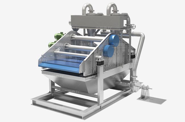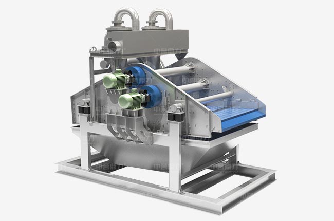 細(xì)沙回收脫水一體機(jī)工作時渣漿泵將篩水混合物輸送至旋流器,離心分級濃縮的細(xì)沙經(jīng)沉沙嘴提供給脫水篩,脫水篩負(fù)責(zé)清洗、分級、脫水后,細(xì)沙、泥等經(jīng)溢流水箱流入污水處理系統(tǒng)。