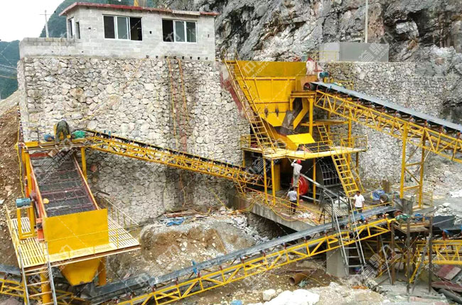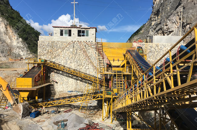 該項目2016年開始建設(shè),是一條時產(chǎn)500噸的石料生產(chǎn)線,主要破碎石灰石,成品石料供樂業(yè)到百色高速公路用料。我公司為其設(shè)計主機使用的是PCZ1615重錘破、1550給料機、3070振動篩。
