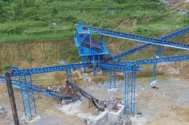 石灰?guī)r物料硬度不高,采用PCZ1512重錘式破碎機(jī),時(shí)產(chǎn)量250-320噸,一次破碎成型,不需要二級(jí)設(shè)備的投資,從PCZ1512重錘式破碎機(jī)破碎出來的物料可直接進(jìn)篩機(jī)篩分出3種不同規(guī)格的成品石料。此種工藝配置簡(jiǎn)單,投資小。