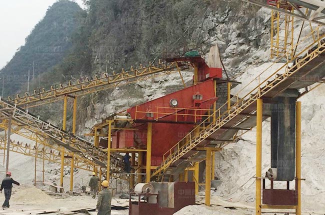 廣西河池這條時產(chǎn)800-1000噸建筑骨料生產(chǎn)線屬于階梯式設(shè)計方案,原料由棒條給料機預(yù)先篩分,其余原料通過PCZ1615錘式破碎機破碎,還有反擊破設(shè)備對不符合要求的石料進行細(xì)碎加工,生產(chǎn)的骨料規(guī)格多,粒型好。