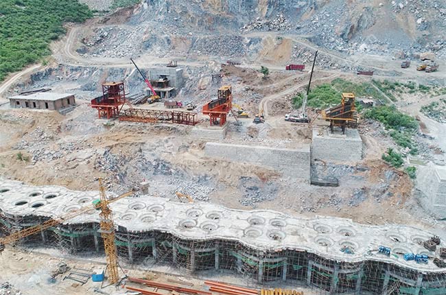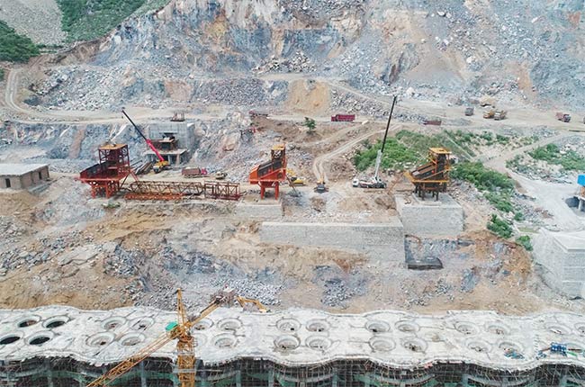 上面是項(xiàng)目在建設(shè)過程中的實(shí)拍圖片,破碎機(jī)、給料機(jī)、振動(dòng)篩等主要設(shè)備都已經(jīng)安裝完成,料倉的基礎(chǔ)也已經(jīng)建好。
