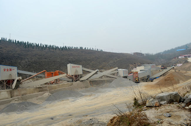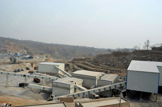 該條時產(chǎn)量700噸的砂石骨料生產(chǎn)線配用一臺1615重錘破碎機就能完成對石灰石的破碎作業(yè),破碎后就可直接經(jīng)過篩分機械進行篩分處理,不需要投資二破進行整形破碎,整條生產(chǎn)線可以節(jié)省40%的投資成本。