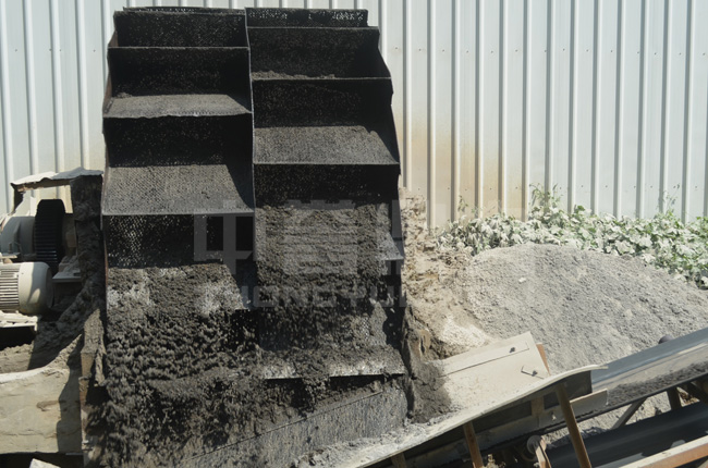 這條300噸的水洗砂生產(chǎn)線,是將破碎后的碎石料經(jīng)過ZSJ1416雙轉(zhuǎn)子制砂機(jī)進(jìn)行細(xì)碎制砂,后由2臺(tái)DLXS3016輪式洗砂機(jī)進(jìn)行洗沙處理。