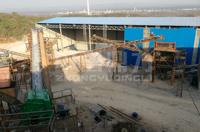 湖北荊門市時產(chǎn)300-350噸石料生產(chǎn)線是17年8月開工建設(shè),11月底進行試機,是以生產(chǎn)05石子、12石子、13石子等石料的生產(chǎn)線。