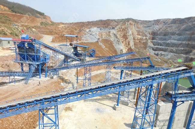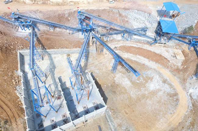 該項目2017年3月10日投產(chǎn),加工螢石,生產(chǎn)2-5mm、5-8mm化工廠使用的物料。依據(jù)螢石礦特性,為其配置了“69顎破+1615錘破+振動篩”及其余配套設(shè)備。