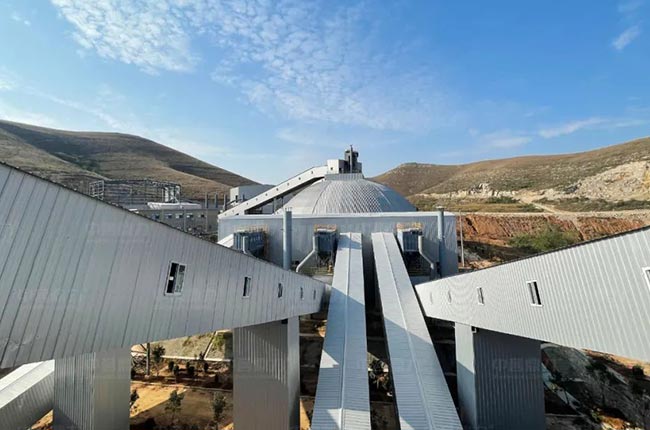 2019年7月簽約,EPC總包模式建設時產4000噸的碎石生產線,加工石灰石,采用錘式破碎機破碎,生產線整體封閉設計,引用有礦山智能化管理系統(tǒng)。