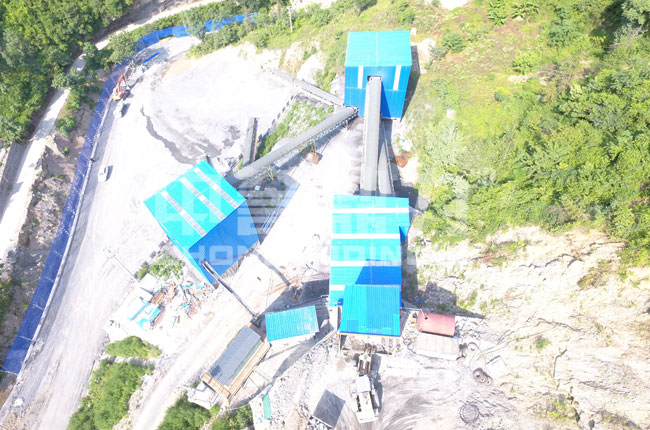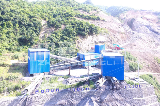 該項目是17年7月投入生產的,主要加工石灰石石料,生產各種規(guī)格的碎石物料。此條生產線采用鋼結構封閉設計,現(xiàn)場揚塵較少,噪音小。