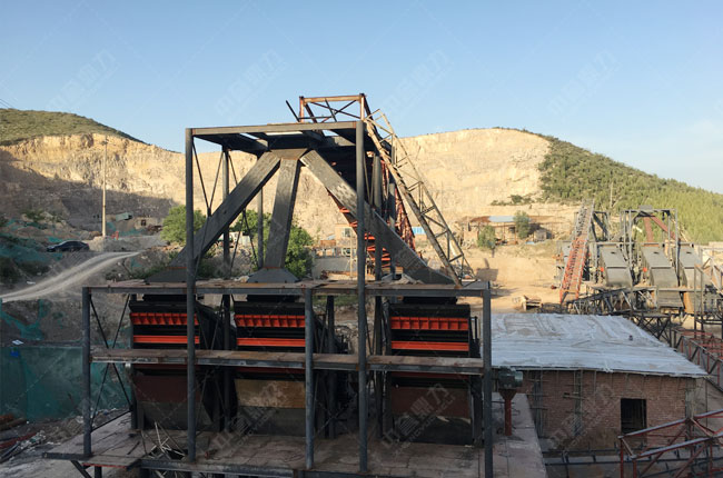 該項目主要加工中等、軟脆性石灰石物料,結(jié)合石灰石軟硬程度,為其配置了1820重錘式破碎機,以及1220整形錘式破碎機。整個生產(chǎn)線的設(shè)計簡單,所需設(shè)備較少,生產(chǎn)效率高,輕松實現(xiàn)時產(chǎn)1200噸的生產(chǎn)需求。