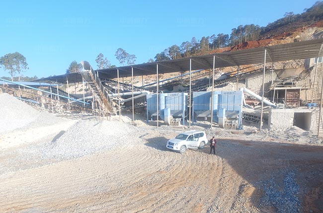 2、兩次破碎工藝,工藝簡單,還配置有收塵器、噴淋、灑水等環(huán)保裝置,減少粉塵飛揚(yáng)。