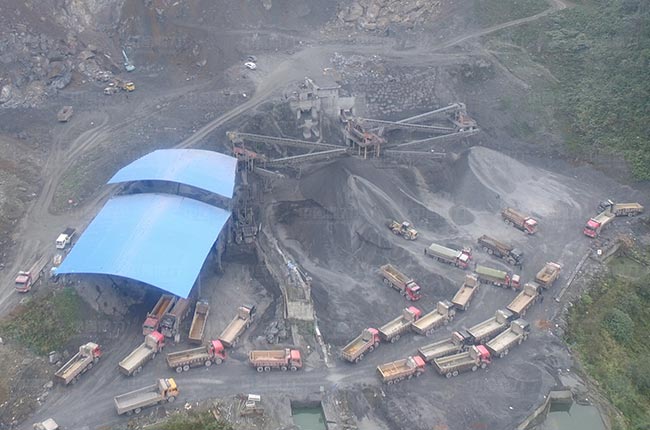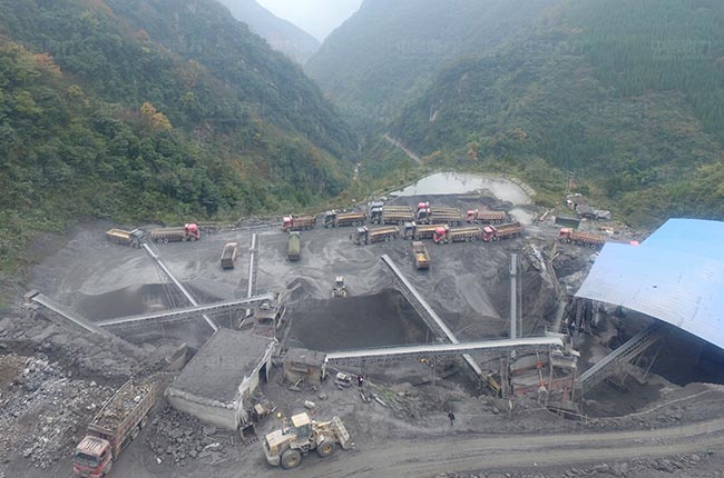 該項目采用兩段破碎工藝,采用PCZ1615重錘破粗碎、PC1220整形破整形破碎,通過兩道YKZ系列振動篩篩分出6種不同規(guī)格的石料。