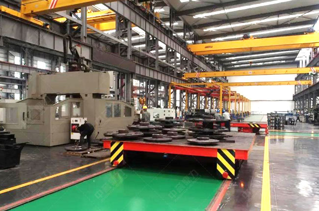用于各個(gè)工位間的產(chǎn)品轉(zhuǎn)運(yùn),具有自動(dòng)行走、自動(dòng)移載功能;采用滑觸線(xiàn)取電,與工位臺(tái)之間采用掃描二位碼定位;與工位臺(tái)之間采用以太網(wǎng)無(wú)線(xiàn)通訊;主線(xiàn)方向上行走采用變頻調(diào)速,速度范圍0-40m/分鐘;橫向移載采用定速輸送產(chǎn)品,速度12m/分鐘;
