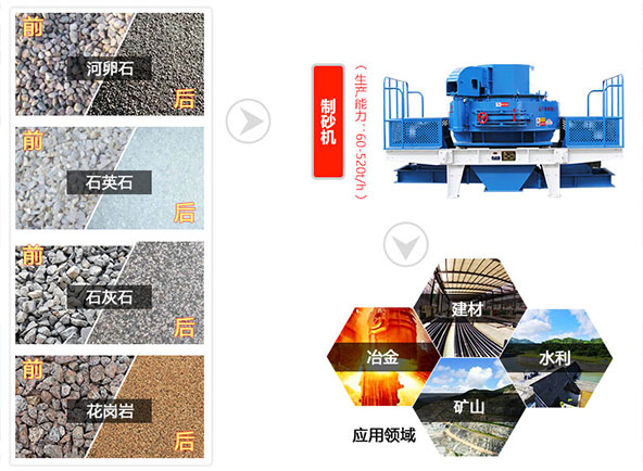 3、VSI立軸細(xì)碎機(jī)設(shè)備:經(jīng)過處理能力大,價格適中,產(chǎn)能:60-520噸/時。