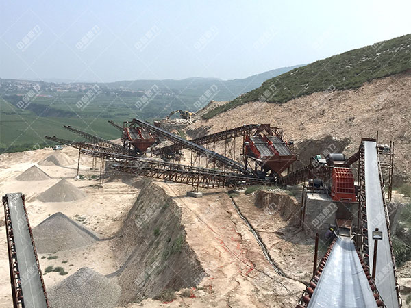 【小型碎石生產(chǎn)線工藝該如何設(shè)計?】在材料點距石子廠較近的狀況下,小型碎石生產(chǎn)線應鄰近料場設(shè)置,以簡化大塊石頭運送環(huán)節(jié),運輸距離,技術(shù)設(shè)計應力求集中緊湊、運送簡捷、盡量利用地形高差,粗碎設(shè)備(含受料堆)進出料高差較大,為節(jié)約土石方開挖項目量,粗碎設(shè)備車間的位置滿意于選在斜坡上,依據(jù)通常經(jīng)驗,較為優(yōu)良的廠址山勢條件應為上陡下緩的坡地,緩地段用在設(shè)計成品堆料場與出料公路,粗碎設(shè)備下料高程直與料場來料的運送途徑相適應,已免重車上坡,因為中整型破碎機械造型尺寸通常較小,加之機械臺數(shù)少,為物料傳送距離,預篩選分級與中整型破碎靖分產(chǎn)品應由溜槽漏斗送至中制沙機粉碎,篩選分級與成品堆料環(huán)節(jié)好設(shè)計在有需高差的臺階地上,成品砂石料一次堆存入倉。