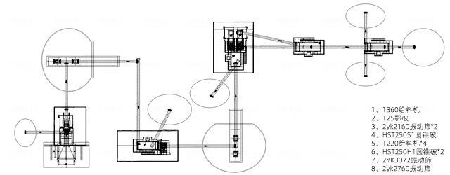 | 配置方案 | HD125顎式破碎機(jī)+GYS500圓錐破碎機(jī)+2465振動(dòng)篩+2165振動(dòng)篩+相關(guān)配套 | SC315S單缸圓錐破碎機(jī)+HP300多缸圓錐破+PF-1520反擊破+3YK2866振動(dòng)篩+2YK2866振動(dòng)篩+配套 | 臥式旋回破+中碎圓錐+沖擊式破碎機(jī) |