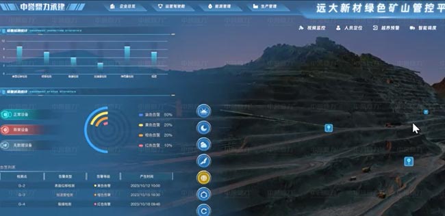 中譽(yù)鼎力綠色礦山管控平臺(tái)(智慧砂石監(jiān)管平臺(tái)),通過(guò)三維技術(shù)實(shí)時(shí)展現(xiàn)廠(chǎng)區(qū)全貌,實(shí)現(xiàn)對(duì)砂石線(xiàn)生產(chǎn)、設(shè)備運(yùn)行、環(huán)保檢測(cè)等數(shù)據(jù)采集、集中規(guī)范展現(xiàn),進(jìn)而實(shí)現(xiàn)對(duì)砂石廠(chǎng)信息化、數(shù)字化、自動(dòng)化深度融合,使整個(gè)礦山具有自我學(xué)習(xí)、分析和決策能力,達(dá)到砂石線(xiàn)的隱患、故障或風(fēng)險(xiǎn)的預(yù)警及防治。