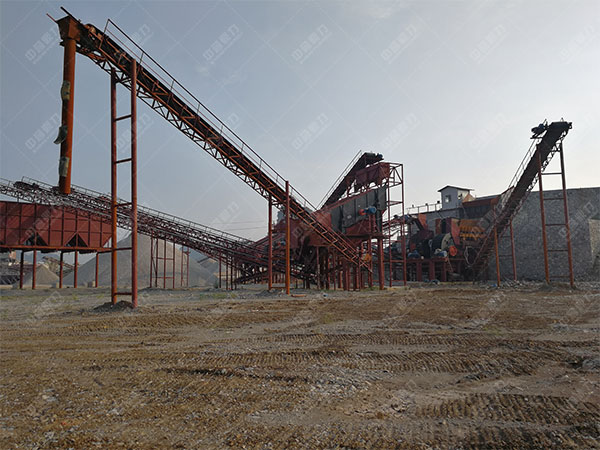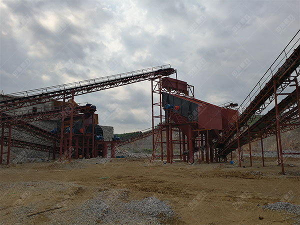 先,巖石由喂料機(jī)均勻地送進(jìn)碎石機(jī)進(jìn)行破碎,然后,產(chǎn)成的粗骨料由皮帶運(yùn)輸機(jī)運(yùn)輸至反擊式破碎機(jī)進(jìn)行深度破碎,整型破碎后的巖石進(jìn)礦山振動篩 篩選分級出不同性能的石子,不粒度合格的石子返料進(jìn)反擊式破碎機(jī)又一次破碎,大塊巖石經(jīng)料堆由振動喂料機(jī)均勻地送進(jìn)顎式破碎機(jī)進(jìn)行初級破碎,初級破碎后的巖石由皮帶運(yùn)輸機(jī)送入反擊式破碎機(jī)進(jìn)行深度破碎;整型破碎后的巖石由皮帶運(yùn)輸機(jī)送進(jìn)礦山振動篩 進(jìn)行篩選分級,篩選分級出多種不同性能的石子,粒度合格的石子由成品皮帶運(yùn)輸機(jī)送往砂石堆;不粒度合格的石子由皮帶運(yùn)輸機(jī)返料送入反擊式破碎機(jī)進(jìn)行又一次破碎,形成閉路多次循環(huán),成品粒度可根據(jù)用戶的需要進(jìn)行組合和分級,為保護(hù)環(huán)境,可搭配輔助的除塵機(jī)械,