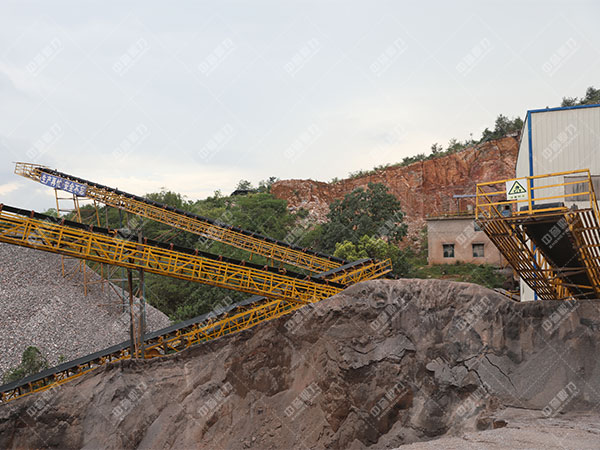 方案一:原料堆+ZSW490x130振動送料機(jī)+PCZ1615重錘頭破碎機(jī)+3YK 3072振動篩+運(yùn)輸機(jī)(B1200x33米、B800x15米(3臺)、B650x10米、B1000x35米)